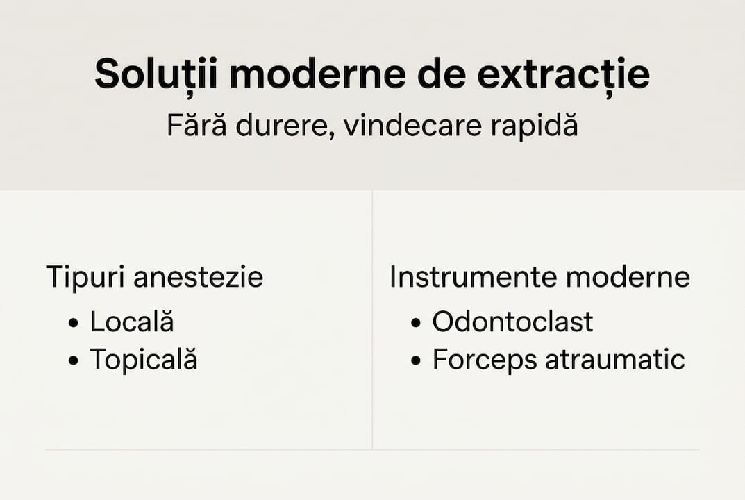 | Extracția fără durere este posibilă | Tehnologia modernă și anestezia eficientă elimină aproape complet disconfortul. |