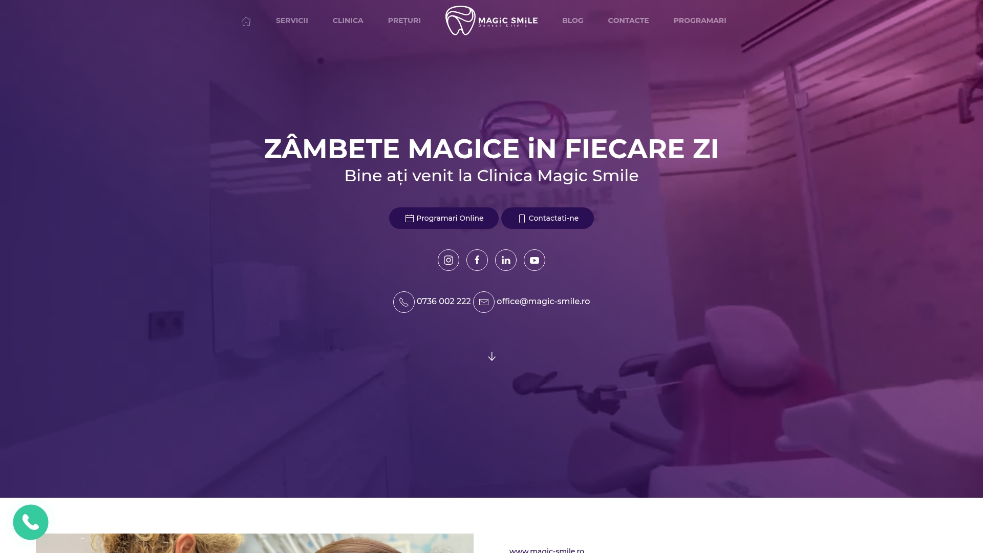 Clinica Magic Smile oferă îngrijire personalizată și o gamă largă de tratamente stomatologice într-un cadru modern. Echipă condusă de Dr. Floriana Tudorache combină competența cu planuri de tratament adaptate fiecărui pacient.